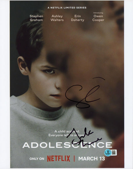 Very low stock (1 unit)$159Unit price /Unavailable Stephen Graham & Jack Thorne Adolescence Signed 11x14 Vertical Photo BAS BS78206