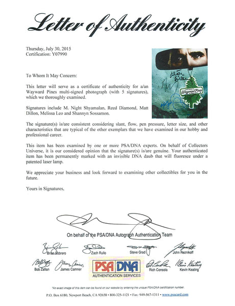 Wayward Pines Cast (5) Shyamalan, Dillon, Leo Signed 8X10 Photo PSA/DNA #Y07990