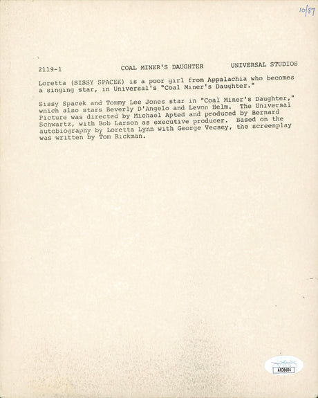 Sissy Spacek Coal Miner's Daughter Signed 8x10 Black & White Photo JSA #AR36684