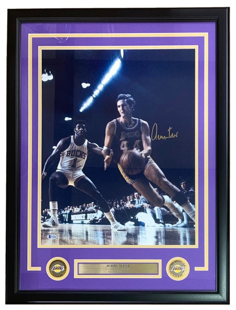Jerry West Signed Framed 16x20 Los Angeles Lakers Photo BAS