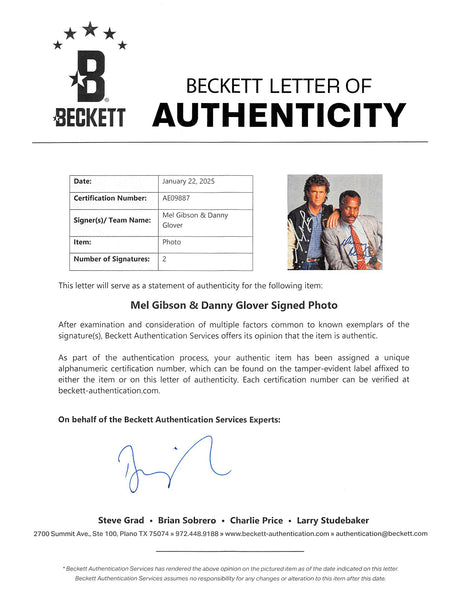 Mel Gibson & Danny Glover Lethal Weapon Authentic Signed 8x10 Framed Photo BAS
