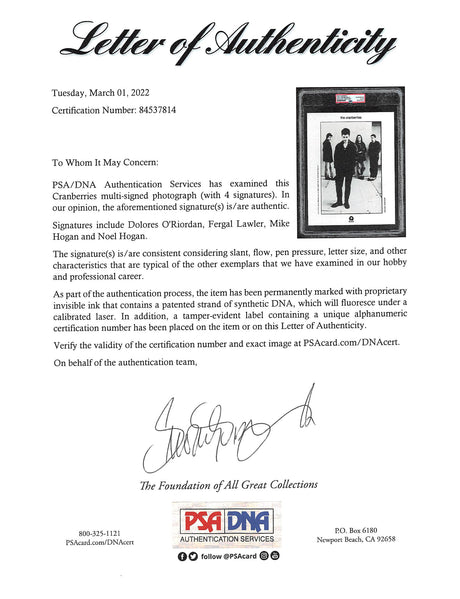 The Cranberries (4) O'Riordan, Lawler, Hogan & Hogan Signed 8x10 Photo PSA Slab