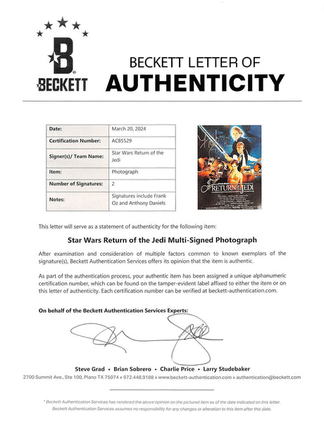 Frank Oz & Anthony Daniels Star Wars Return of the Jedi Signed 14x20 Photo BAS
