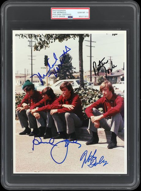 Monkees (4) Tork, Jones, Dolenz, and Nesmith Signed 8x10 Photo Auto 10! PSA Slab