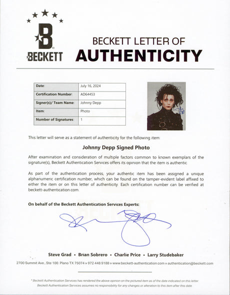 Johnny Depp Edward Scissorhands Authentic Signed 8x10 Photo BAS #AD64453
