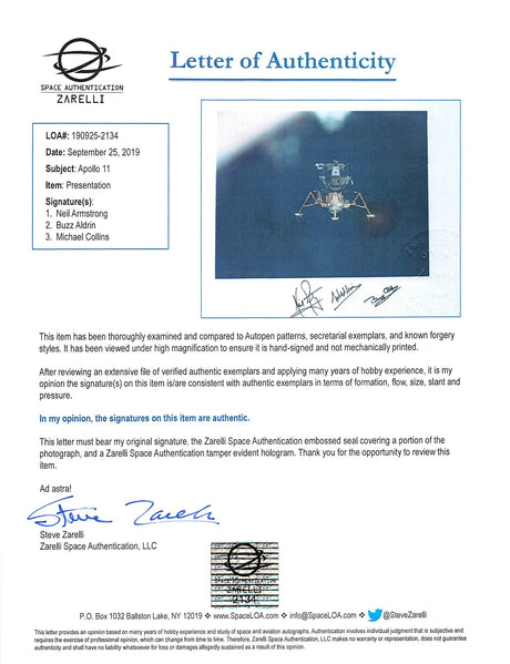 Apollo 11 (3) Armstrong, Aldrin & Collins Signed Matted 10.75x13.45 Photo BAS
