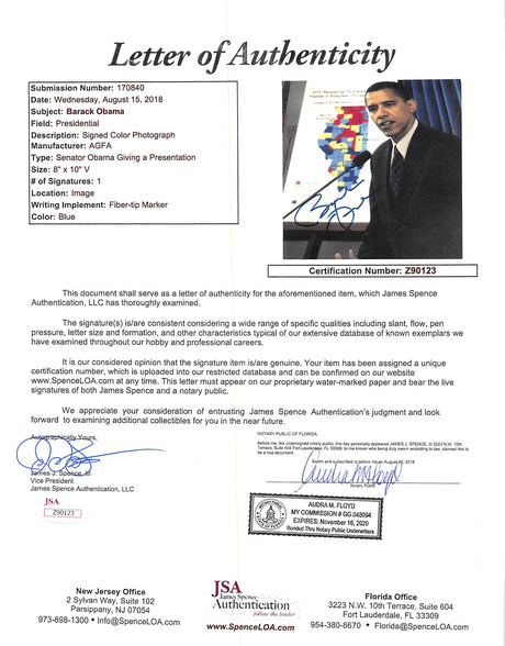 Barack Obama President Authentic Signed 8x10 Photo Autographed JSA #Z90123