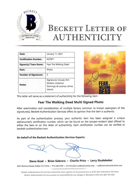 Fear The Walking Dead (3) Dickens, Domingo & Henrie Signed 11x14 Photo BAS