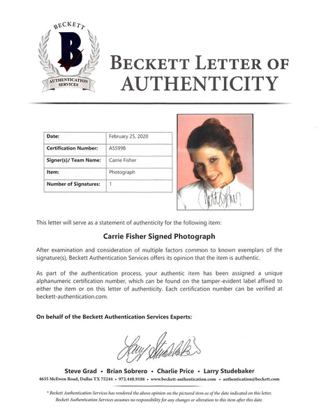 Carrie Fisher Star Wars The Empire Strikes Back Signed 11x14 Photo BAS #A55998