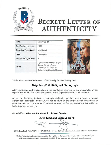 Neighbors 2 Cast (6) Rogen, Clemons, +4 Signed 12x18 Photo BAS #A00389