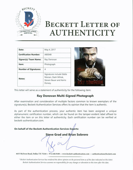 Ray Donovan (4) Marsan, Mihok, Bauer & Dorsey Signed 11X14 Photo BAS #A80048