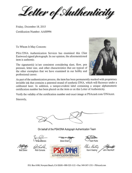 Clint Eastwood Dirty Harry Authentic Signed 8x10 Photo PSA/DNA #AA00963