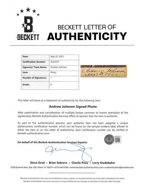 Andrew Johnson "May 7th 1868" Signed Matted 4.25x6.5 Cabinet Photo Auto 9! BAS