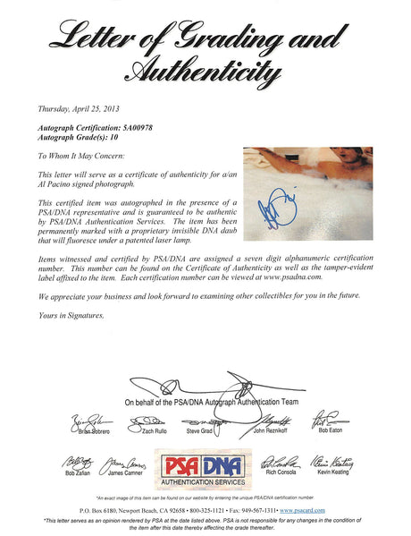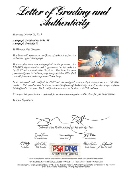 Al Pacino Scarface Signed 11x14 Horizontal Photo Auto 10! PSA/DNA Itp #5A00978