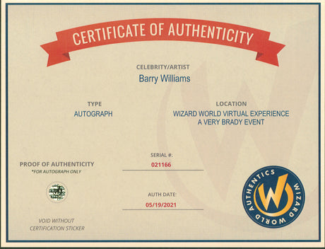 Very low stock (1 unit)$1,259Unit price /Unavailable Barry Williams The Brady Bunch Authentic Signed 8x10 Photo Wizard World 2