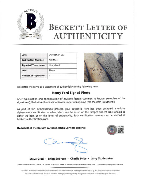 Henry Ford Authentic Signed 8x10 6.85x9.25 Photo Autographed BAS #AB14174