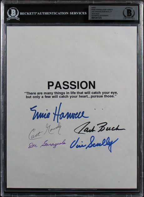 Broadcast Legends (5) Scully, Buck, Garagiola, +2 Signed 8x10 Sheet BAS Slabbed