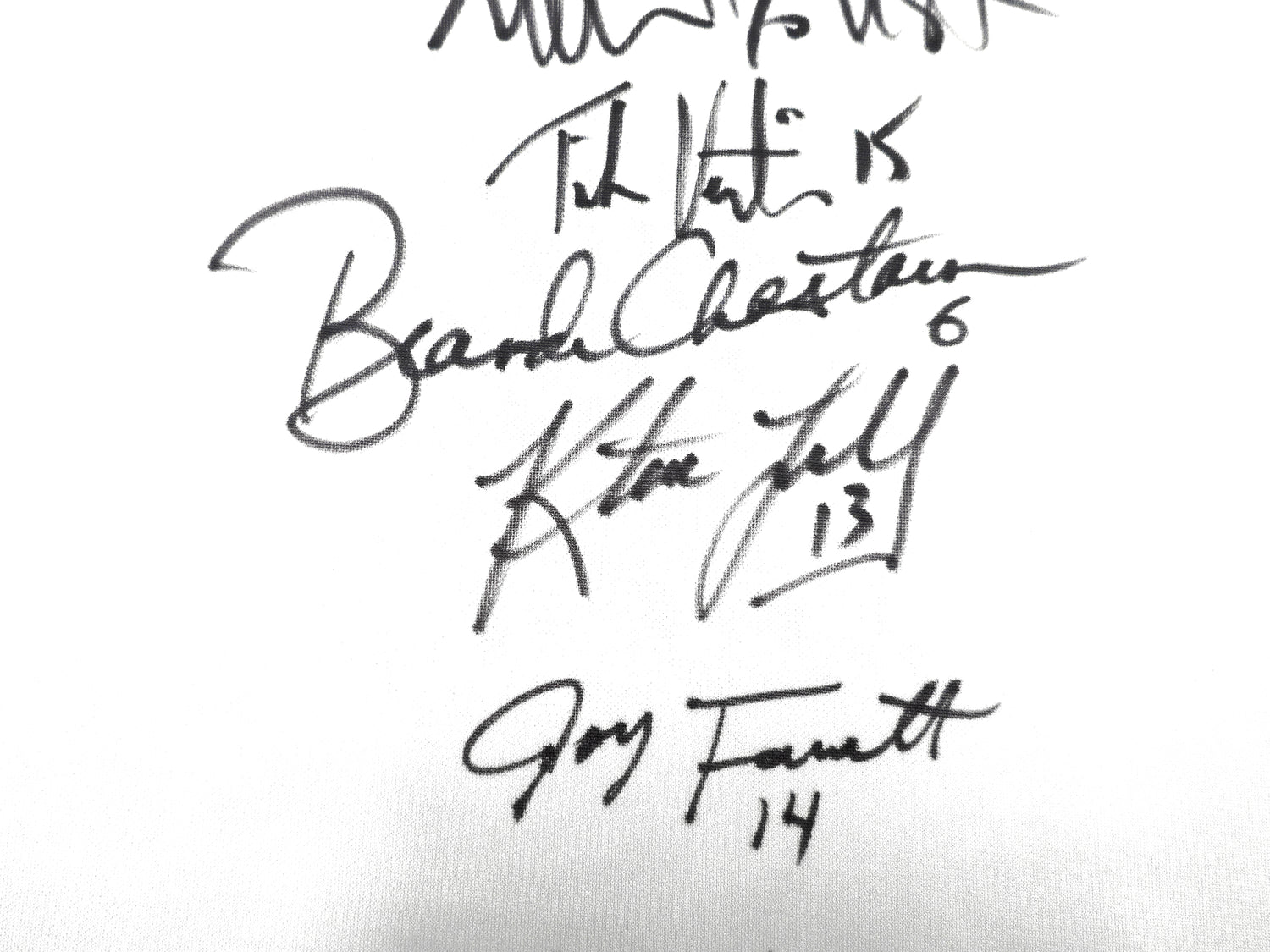 - Hand-signed by: Mia Hamm, Brandi Chastain, Briana Scurry, Michelle Akers, Joy Fawcett, Kristine Lilly, Carla Overbeck, and Tisha Venturini.