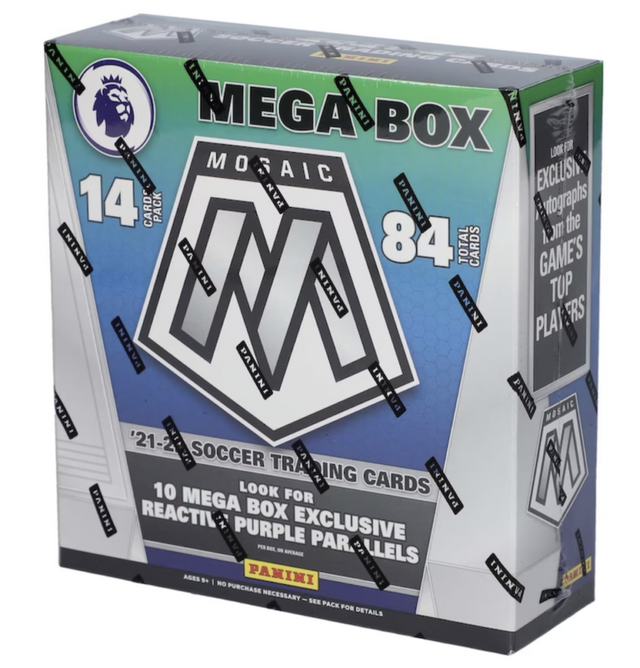With its striking Mosaic design and rare parallels, this 2021-22 Panini Mosaic Soccer Mega Box is a prime addition to any soccer card collection. Whether you're chasing the biggest names in the Premier League or hunting for exclusive inserts, this box delivers unparalleled excitement. Limited availability – secure yours today!