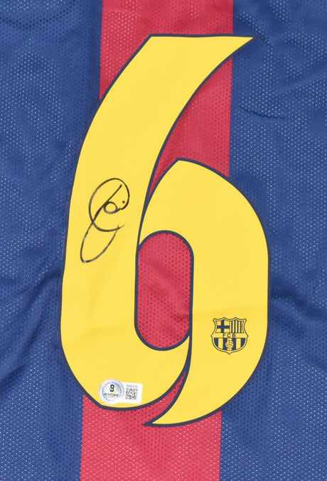 Xavi Signed FC Barcelona Home Soccer Jersey #6 - Beckett Hologram
