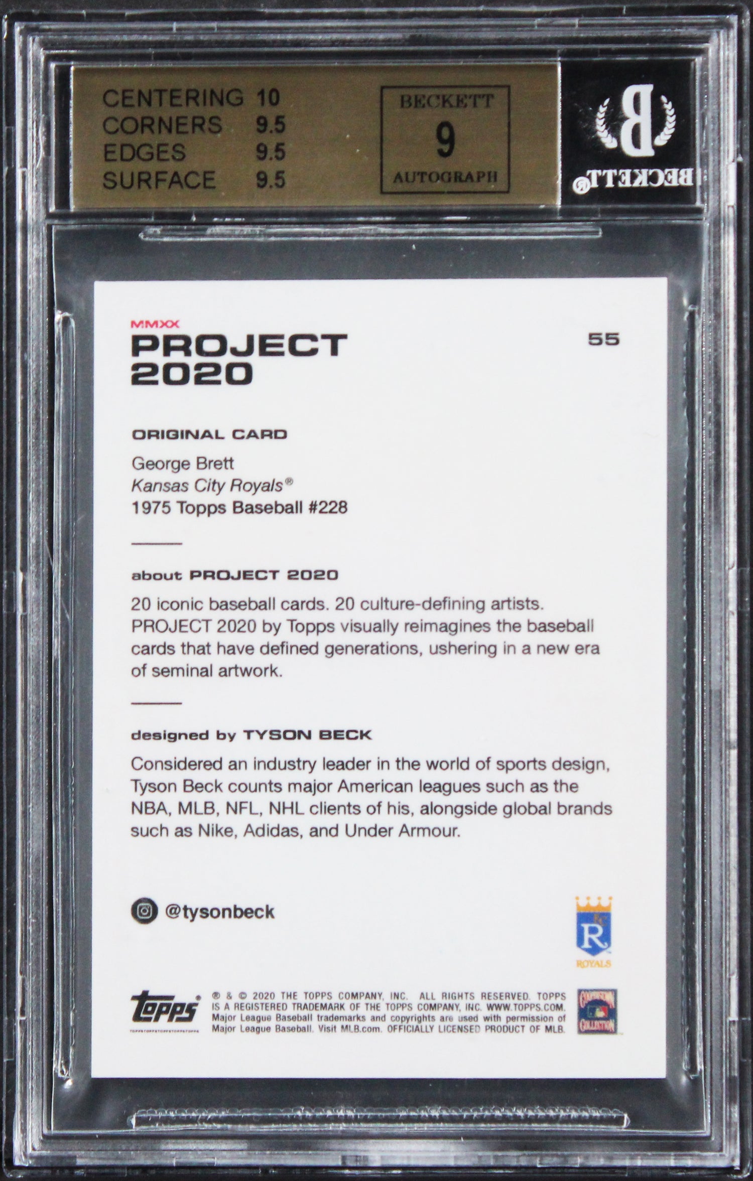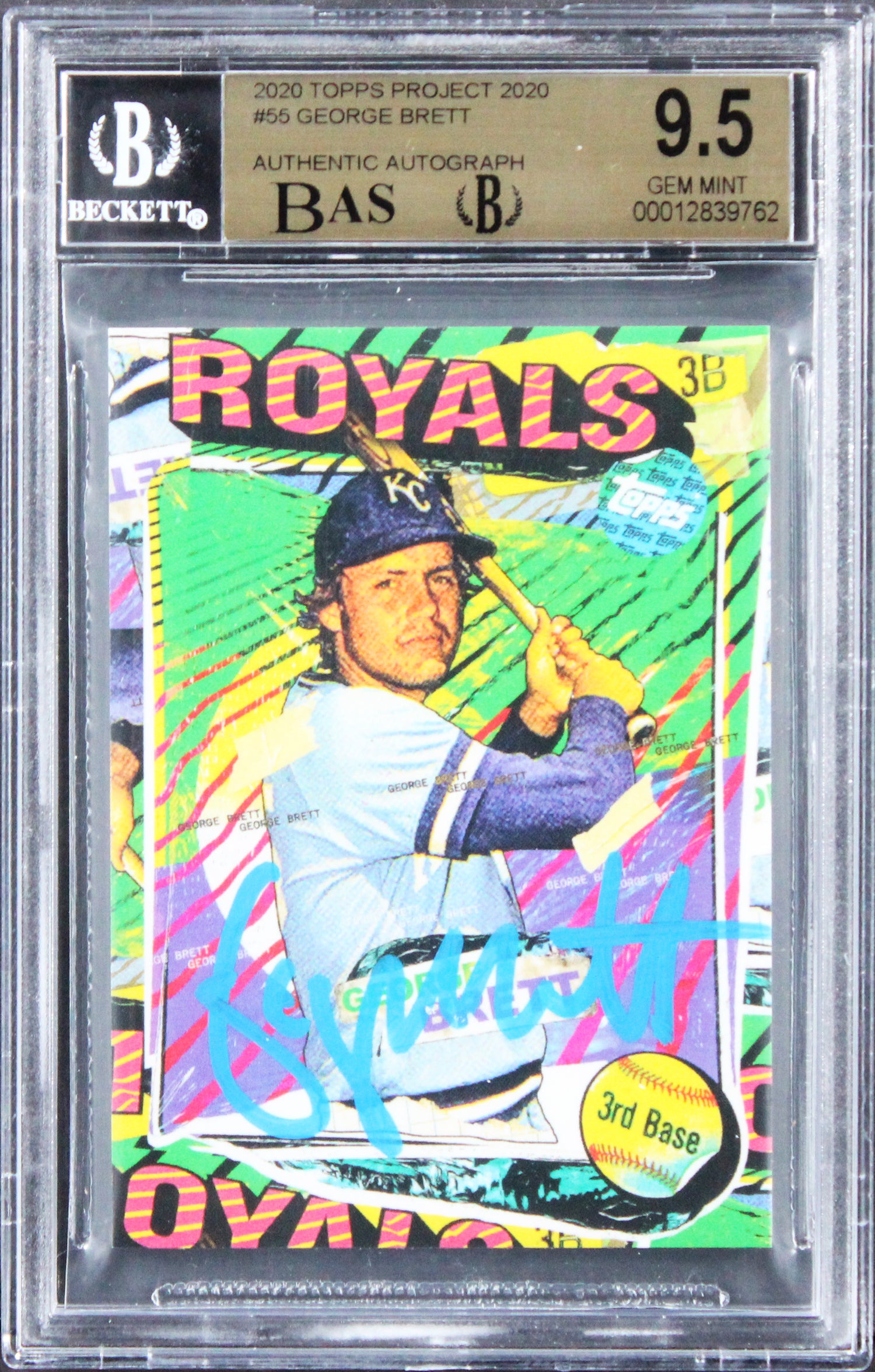 Royals George Brett Signed 2020 Topps Project 2020 #55 Card 9.5 Auto 9! BAS Slab