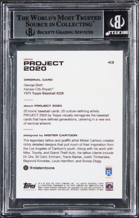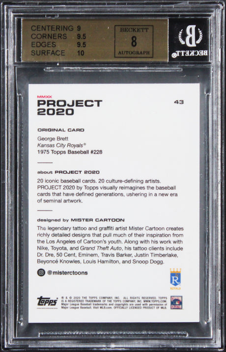 Royals George Brett Signed Topps Project 2020 #43 Card 9.5, Auto 8! BAS Slabbed
