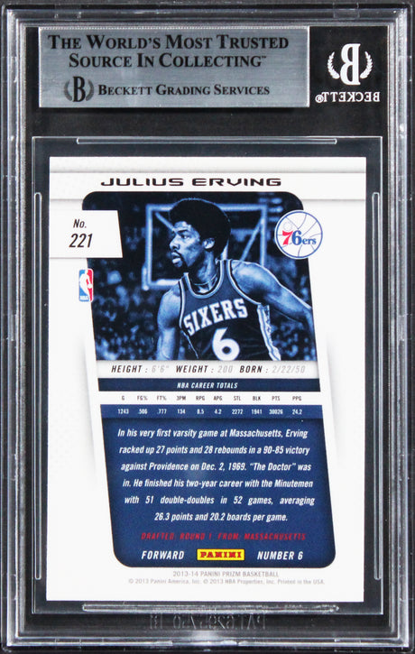 76ers Julius "Dr. J" Erving Signed 2013 Panini Prizm #221 Card BAS Slabbed