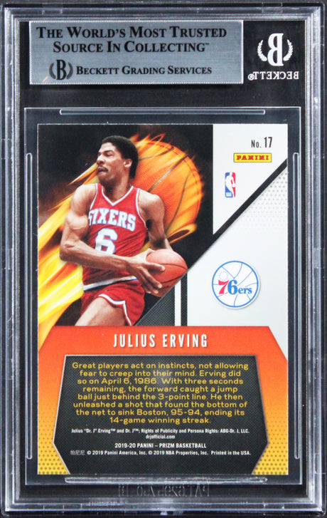 76ers Julius "Dr. J" Erving Signed 2019 Panini Prizm Fearless #17 Card BAS Slab