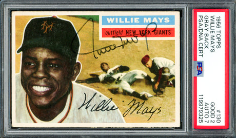 Willie Mays Autographed 1956 Topps Card #130 New York Giants PSA 2 Auto Grade 7 PSA/DNA #119979325