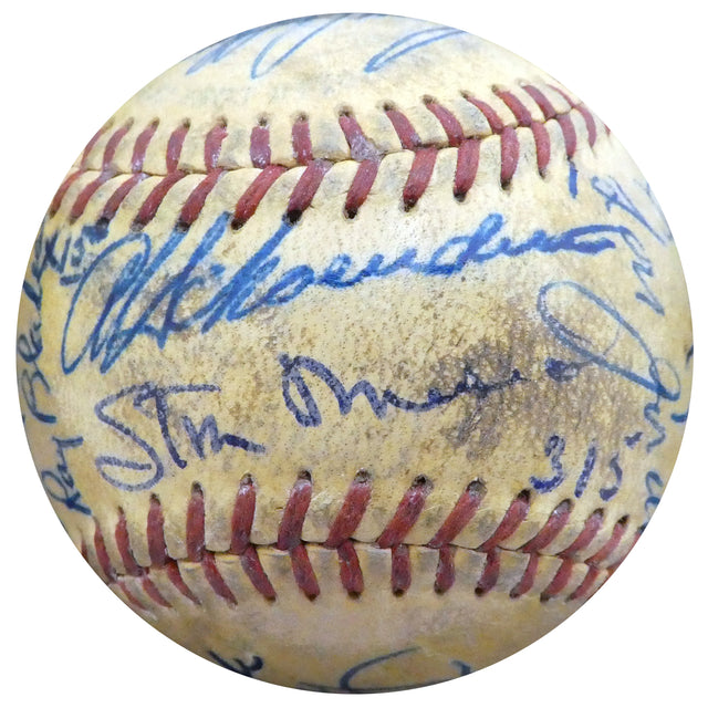This is a rare and historic Official Baseball hand-signed by 23 members of the 1951 St. Louis Cardinals and Cincinnati Reds, making it a must-have for serious collectors and baseball historians. This incredible piece features autographs from legendary players, including: