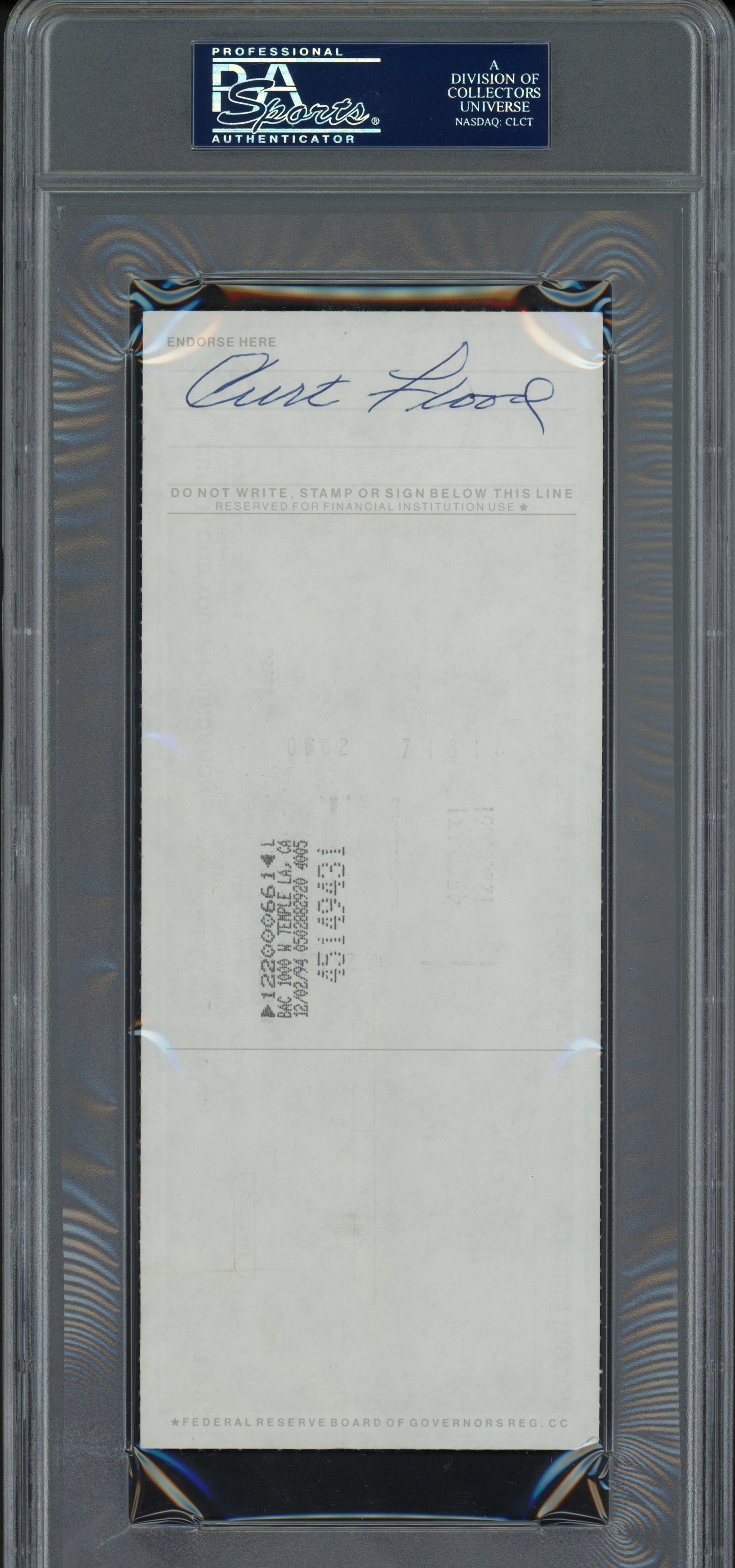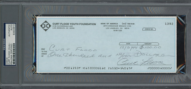 Curt Flood Autographed 3.5x8.5 Check St. Louis Cardinals (Signed Twice) PSA/DNA #83933914