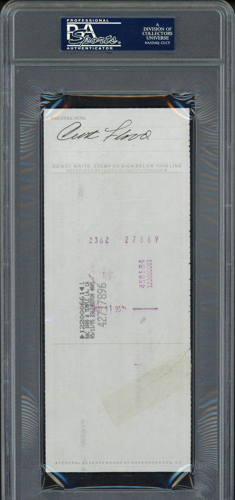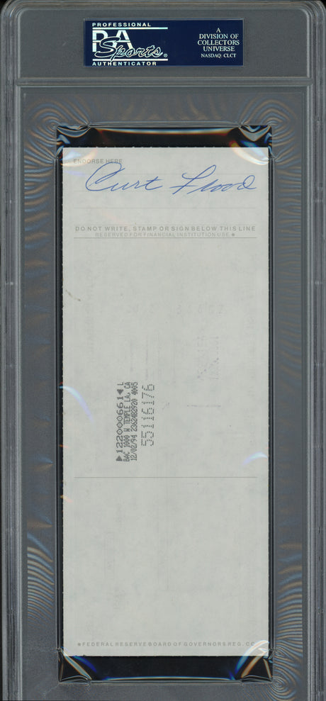 Curt Flood Autographed 3.5x8.5 Check St. Louis Cardinals (Signed Twice) PSA/DNA #83933915