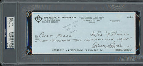 Very low stock (1 unit)$259Unit price /UnavailableCurt Flood Autographed 3.5x8.5 Check St. Louis Cardinals (Signed Twice) PSA/DNA #83933924