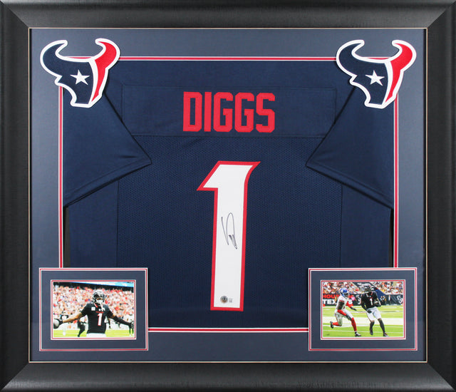 Own a piece of NFL history with this Autographed Navy Blue Pro Style Framed Jersey, personally signed by Stefon Diggs of the Houston Texans. This stunning framed jersey is a must-have for serious memorabilia collectors and dedicated football fans, offering both authenticity and an eye-catching display for your collection.