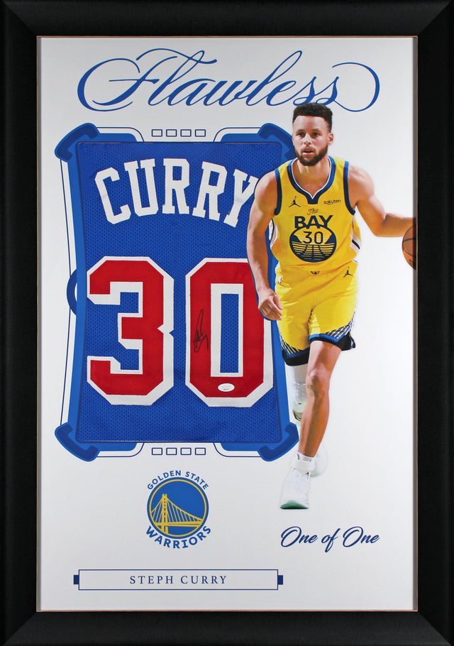 Own a piece of basketball greatness with this Stephen Curry Autographed One of One Jersey Framed Display, a must-have for collectors and Golden State Warriors fans. Personally hand-signed by NBA superstar Stephen Curry, this exclusive item is a true collector’s gem that combines authenticity, artistry, and basketball history. Curry, a four-time NBA Champion and two-time MVP, helped revolutionize the game with his sharpshooting skills and unmatched agility. This display celebrates his legacy in premium style. Expertly crafted for presentation, this Stephen Curry signed jersey has been professionally framed to impressive dimensions of approximately 28.5 x 40.5 inches, making it a standout centerpiece in any sports memorabilia collection or fan cave.