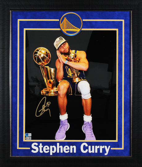 Warriors Stephen Curry Signed 16x20 Framed Horizontal Trophy Blackout Photo JSA