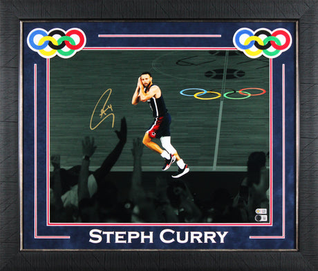 USA Stephen Curry Signed 16x20 Vertical Spotlight Framed Photo Vs Wembanyama BAS