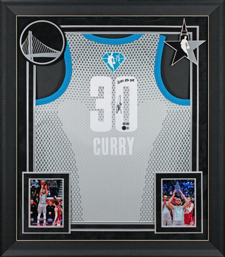 Warriors Stephen Curry "ASG MVP" Signed White All Star Nike Framed Jersey BAS