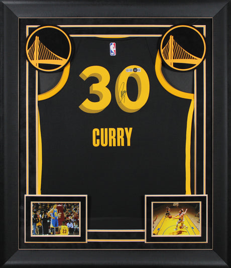 Warriors Stephen Curry Signed Black Nike 2023 City Edition Framed Jersey BAS W