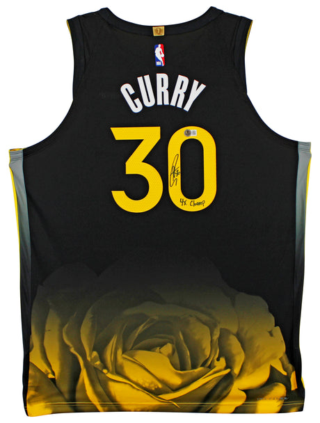 Stephen Curry "4x Champ" Signed Black Nike Rose City Ed. Authentic Jersey BAS