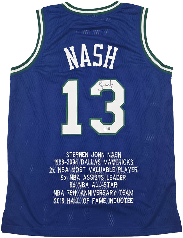 Dallas Mavericks Steve Nash Autographed Blue Stat Jersey Beckett BAS Witness Stock #252470