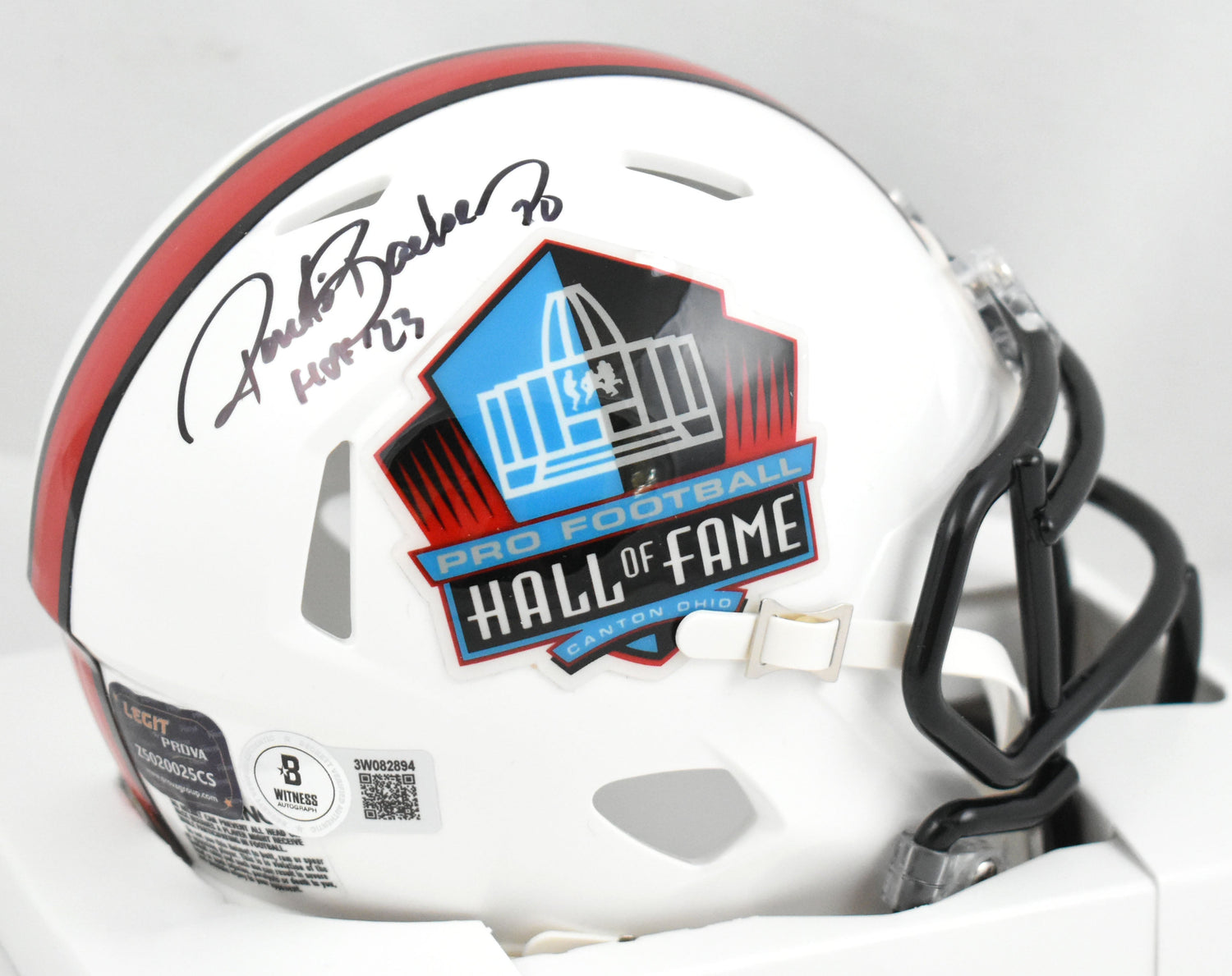 Celebrate the legendary career of Ronde Barber with this officially signed Tampa Bay Buccaneers Hall of Fame Speed Mini Helmet by Riddell. Complete with a bold "HOF" inscription, this collectible commemorates Barber’s induction into the Pro Football Hall of Fame, highlighting his legacy as one of the most dominant defensive backs in NFL history. A centerpiece for any die-hard Buccaneers fan or serious memorabilia collector, this signed mini helmet is authenticated and ready to elevate your collection.