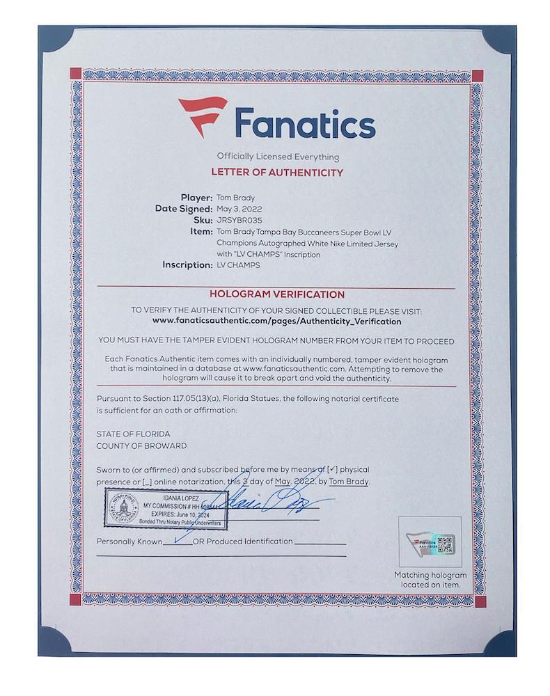 Tom Brady Autographed/Inscribed "SB LV CHAMPS" Tampa Bay Buccaneers White Nike Limited Jersey Fanatics is backordered and will ship as soon as it is back in stock.