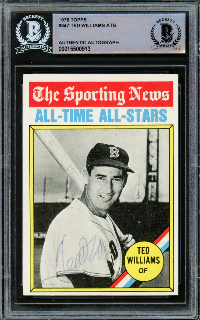 Ted Williams Autographed 1976 Topps Card #347 Boston Red Sox Beckett BAS #15500913