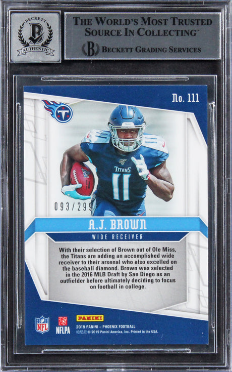Titans A.J. Brown Signed 2019 Panini Phoenix #111 #93/299 RC Auto 10 BAS Slabbed