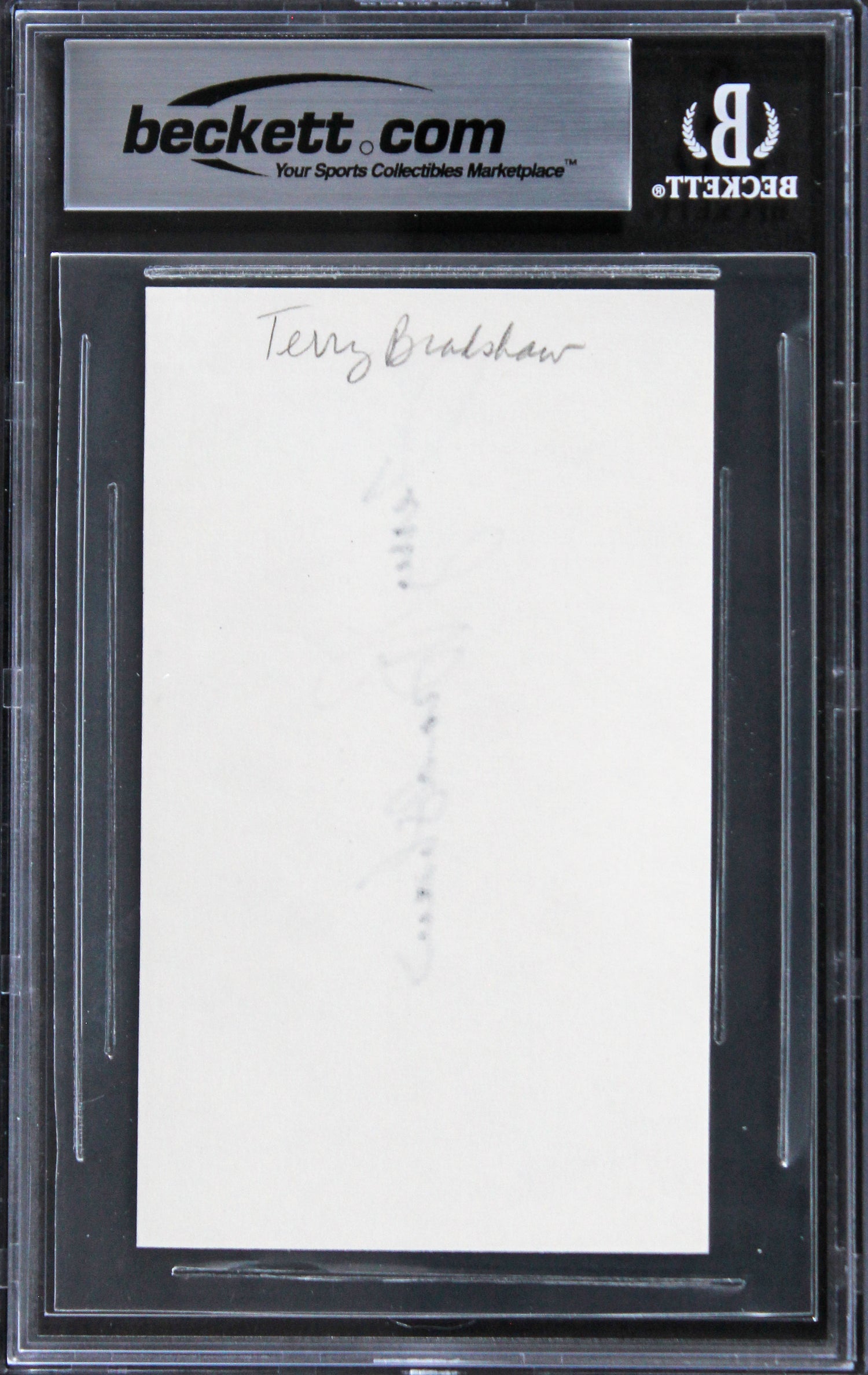 Steelers Terry Bradshaw Authentic Signed 3x5 Index Card Autographed BAS Slabbed