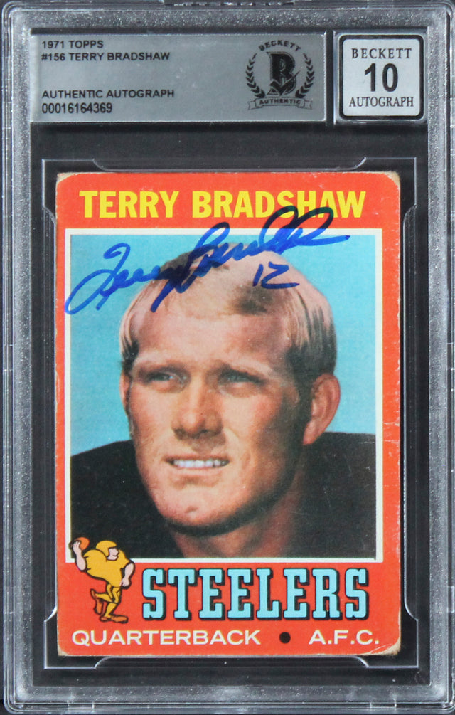 Steelers Terry Bradshaw Signed 1971 Topps #156 RC Card Auto 10! BAS Slabbed