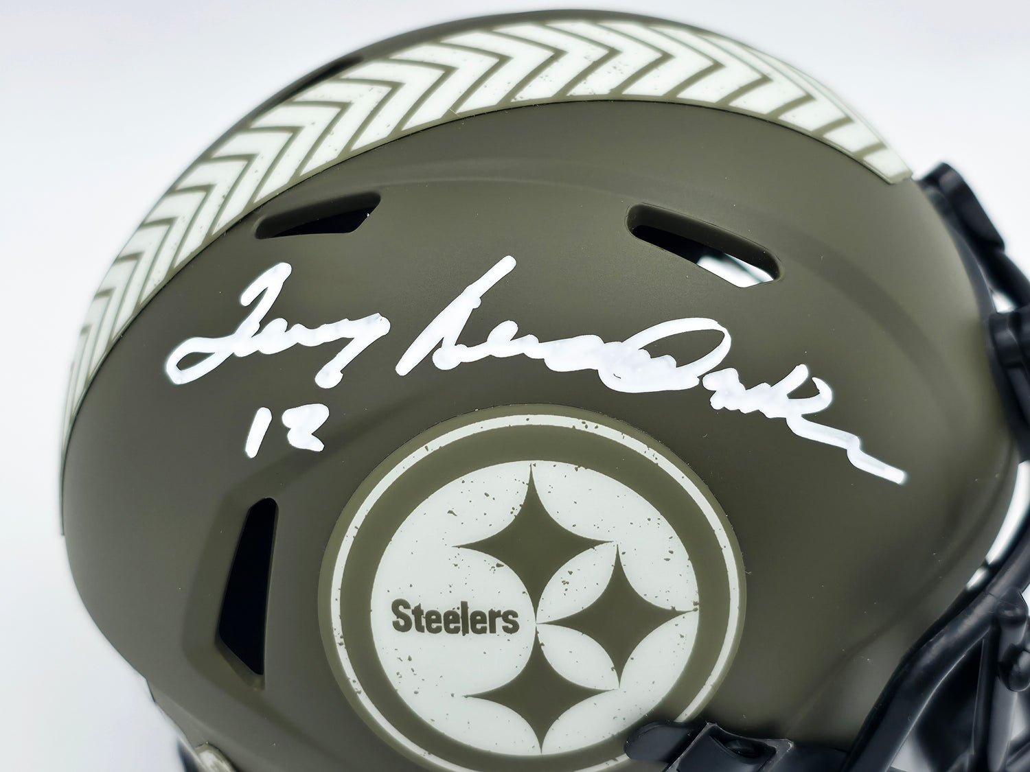 Terry Bradshaw Autographed Pittsburgh Steelers Army Green Salute to Service Speed Mini Helmet Beckett BAS Witness Stock #241642 is backordered and will ship as soon as it is back in stock.
