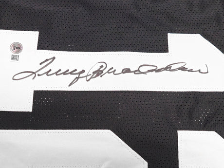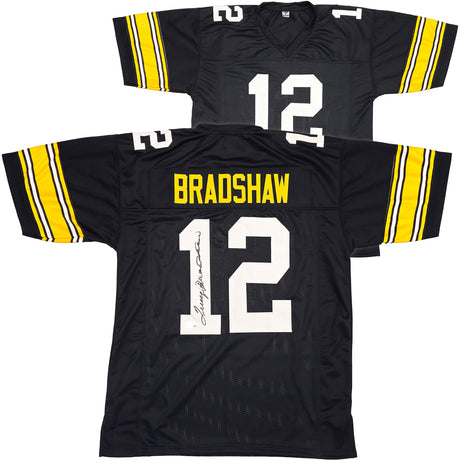 Pittsburgh Steelers Terry Bradshaw Autographed Black Jersey Beckett BAS Witness Stock #230649
