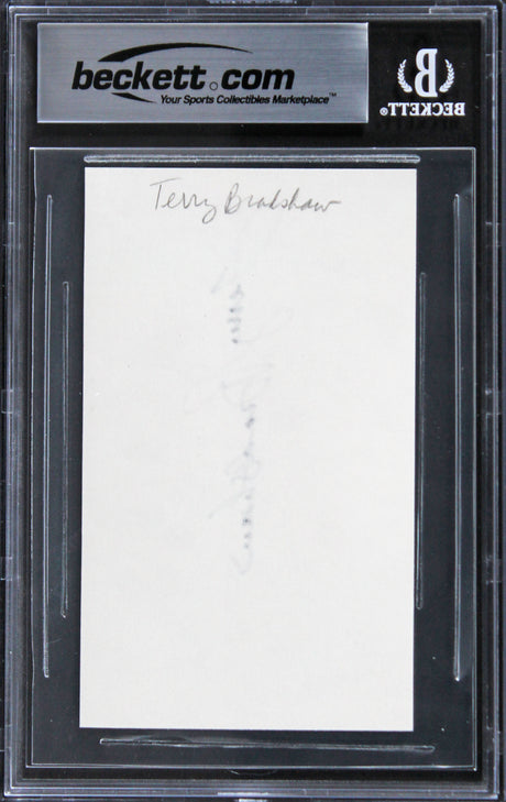 Steelers Terry Bradshaw Authentic Signed 3x5 Index Card Auto 10! BAS Slabbed
